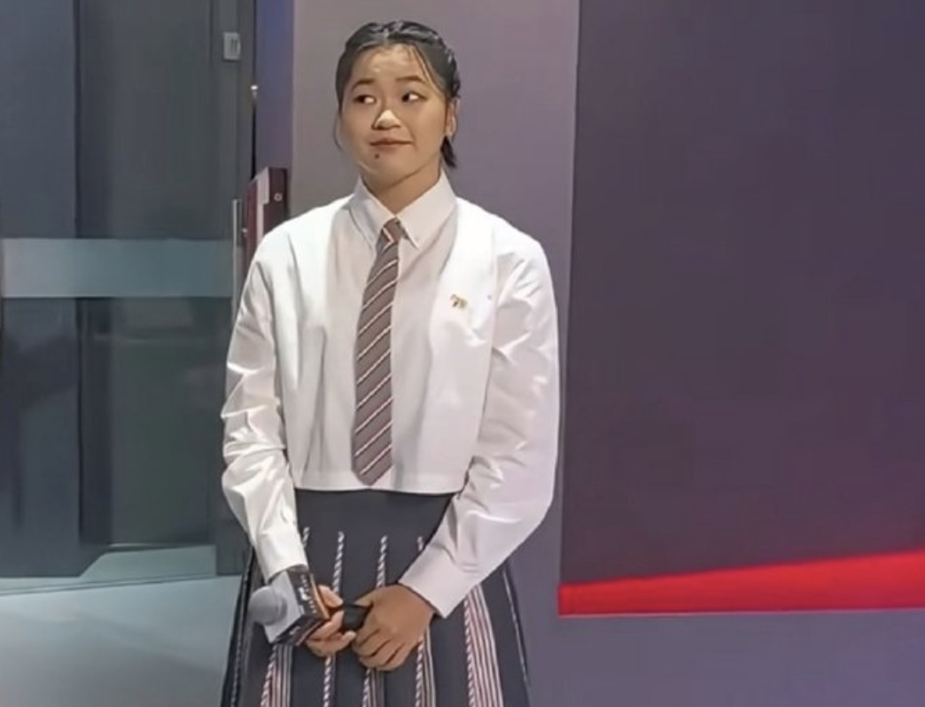今日,全红婵受到品牌方的邀请,前往上海参加产品推广活动。在现场,全红婵身穿一件纯白色的衬衫,打了一个条纹领带,下身则是一件粉黑竖纹百褶半身裙,看上去就像一个动感活泼的中学生。